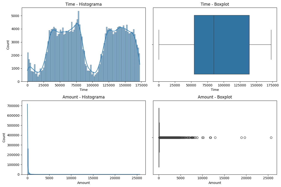 Las columnas V1 a V28 son el resultado de una transformación PCA. Por lo tanto, ya están normalizadas. Sin embargo para las columnas Time y Amount serán analizadas para saber si necesitan escalado.