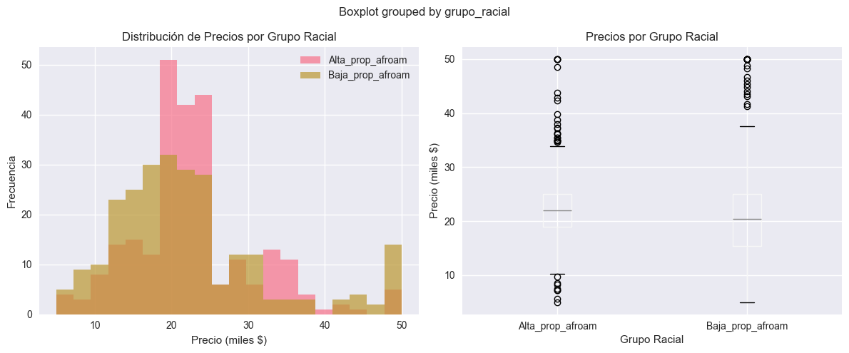 B: R² = 0.7112 (mejora predictiva pero con riesgo de perpetuar sesgo). - Brecha de precios por grupo (media):