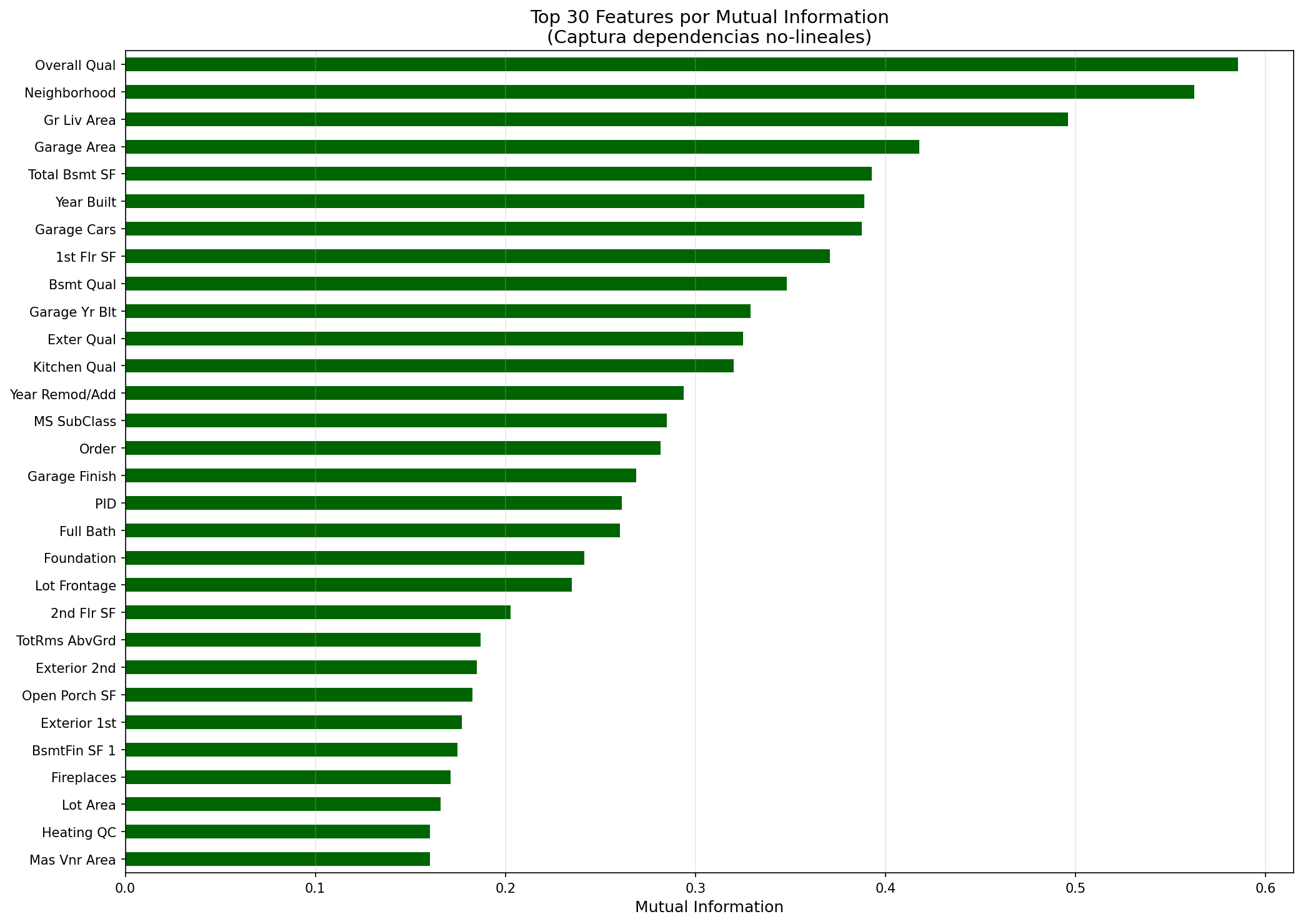 Resultado: Mutual Information obtuvo el mejor RMSE ($26,279) entre todos los métodos evaluados.